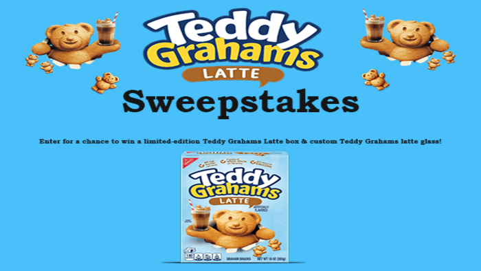 Enter for a chance to win the Teddy Grahams Latte Sweepstakes! Ends September 17, 2025. You are limited to one (1) entry during the Sweepstakes Period PRIZES AND APPROXIMATE RETAIL VALUE (“ARV”): The Prizes available to be awarded are as follows: Fifty (50) First Prizes: One (1) 12 oz. Double Walled Latte Glass Mug and (1)