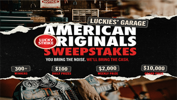 Lucky Strike Luckies’ Garage Sweepstakes & Instant Win Game – Win Up To $10,000 Cash or $100 Gift Card