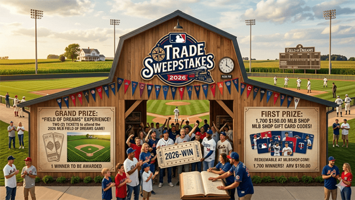 Enter the Budweiser MLB 2026 Trade Sweepstakes! Ends on April 30, 2026 PRIZE DETAILS: Grand Prize (one [1] prize to be awarded): Winner will receive a “Field of Dreams” Experience (“Experience”) consisting of two (2) tickets to attend the MLB Field of Dreams baseball game (“Game”) scheduled to occur on August 13, 2026, in Dyersville, Iowa and